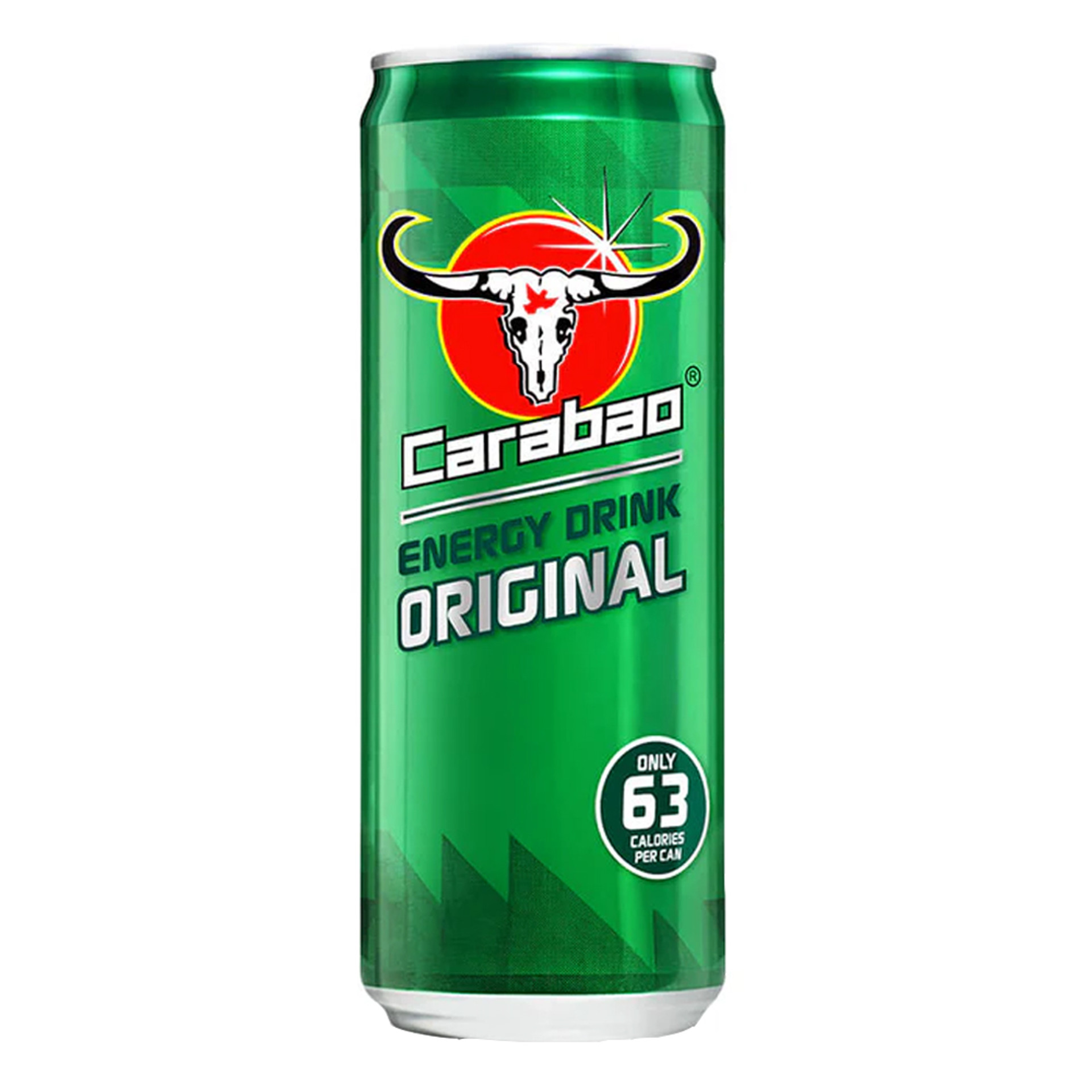 Carabao is a great tasting, sparkling Original flavoured energy drink with taurine, caffeine, B vitamins, with sugar and sweeteners. Only 63 calories per can.