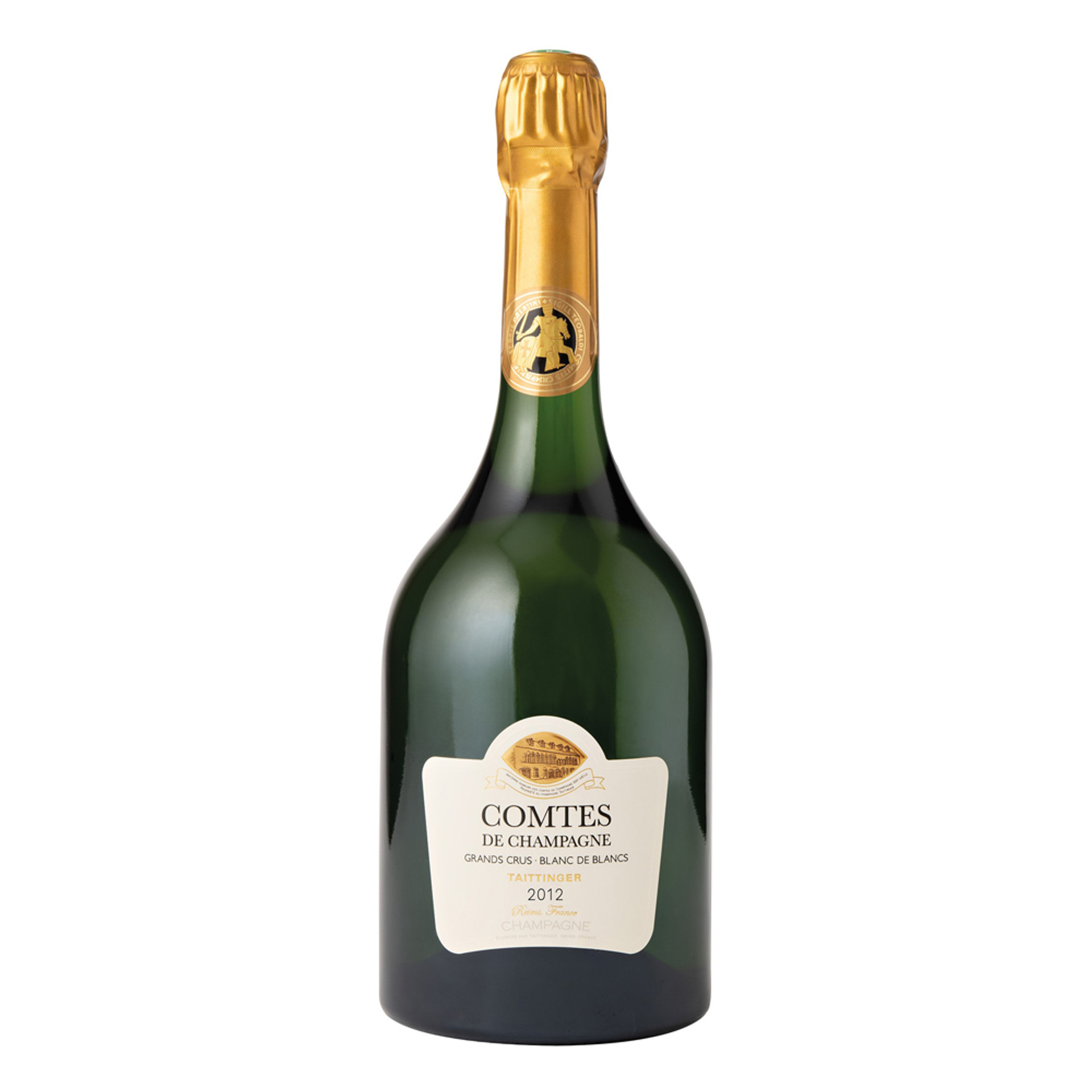 Taittinger’s Prestige Cuvee, the definitive Blanc de Blancs Champagne, is made solely in great years from Grand Cru Chardonnay from 100% rated vineyards in Avize, Cramant, Chouilly and Le Mesnil-sur-Oger in the Cote des Blancs. Presented in an 18th Century antique style bottle, is a hand crafted Champagne, enhanced by 5 years ageing on the lees in the cellars at Saint Nicaise in Reims together with 5% being aged in new French oak barrels.